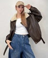 ボア襟付きレザージャケット
