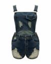 ダメージデニムミニサロペット