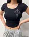 クロスラインストーンTシャツ