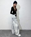 チェーンやチャームをリアルにプリントしたが存在感バツグンなデザインデニム☆ まるでアクセをじゃらっと付けているようなプリントで、