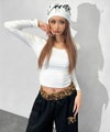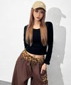 ウエスト部分とバックポケットに施したレオパのボアがアクセントになり、シンプルなトップス合わせでも一気に強めギャルな雰囲気に!!