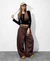 脚のラインを拾わないワイドシルエットで体型カバーしながらも重心低めの今っぽルーズ感を演出◎