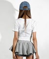 甘いパールリボン×レースフリルでガーリーに仕上げつつ、カジュアルなデニムベースでギャルマインドはしっかりキープ!!