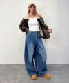 ゆるっとしたシルエットが女性らしさを残しつつ、