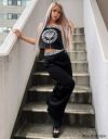 ワイドシルエットが脚のラインをカバーしつつ、Y2Kストリートなバイブスも全開★