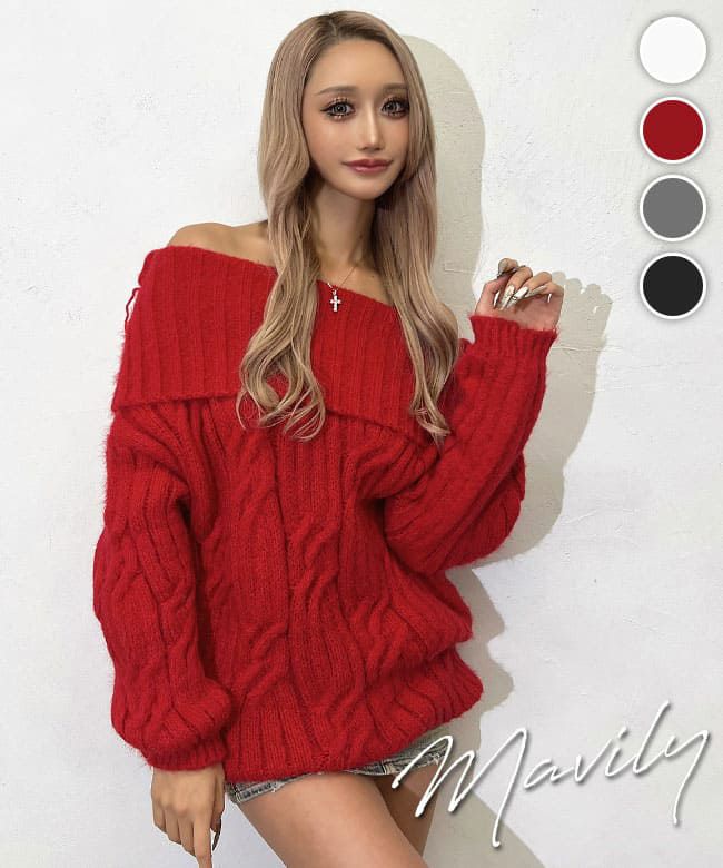 オフショルニットトップス
