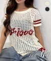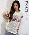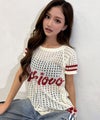 ロゴメッシュニットトップス