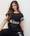 ストリートムード全開なロゴ入りメッシュニットトップス♪