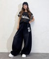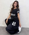 バスケユニっぽい袖ラインとロゴデザインがスポーティ感をプラスしてくれる◎