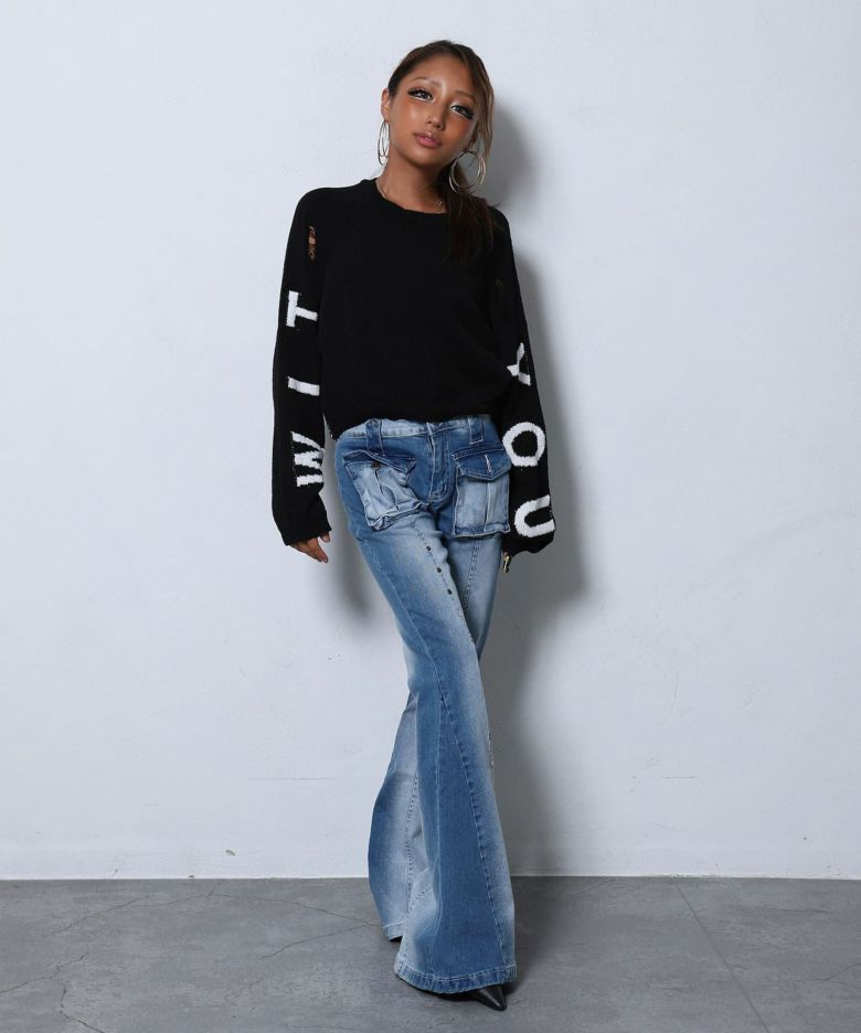 ワイドレッグロゴデニム