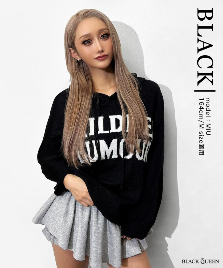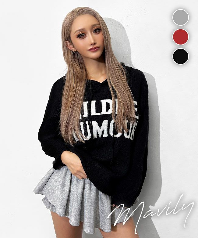 ロゴ入りニットルーズパーカー