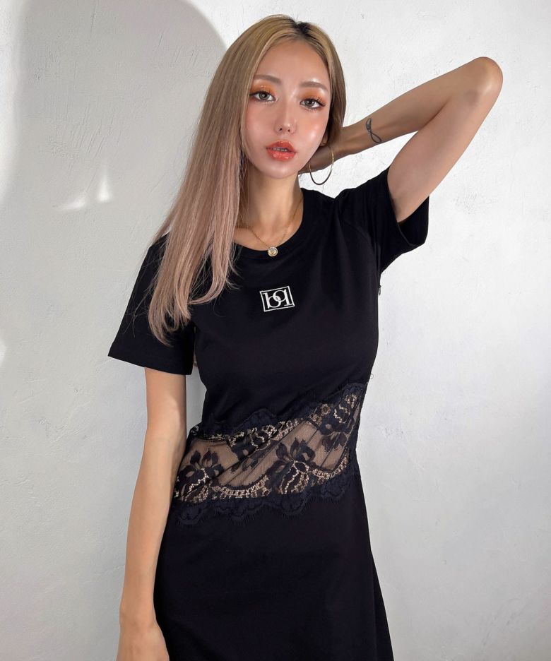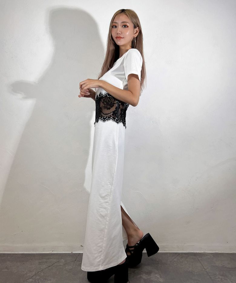 レース切替ロングワンピース